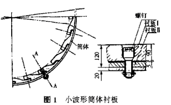 銅礦選礦產(chǎn)現(xiàn)有2臺(tái)φ3.2m×3.1m格子型球磨機(jī),均為1959年投入使用的格子型球磨機(jī),目前,這倆臺(tái)格子型球磨機(jī)年處理礦石35~40萬t(較多年處理量曾達(dá)60萬t以上),在簡體橫斷面上,沿筒體圓周有24塊小波形襯板一塊壓著一塊,格子型球磨機(jī)每塊用2只M36螺釘與筒體固定,相鄰倆塊在筒體長度方向上的間隙錯(cuò)開,格子型球磨機(jī)通過長期對其使用和失效情況的考察發(fā)現(xiàn),失效報(bào)廢幾乎都是因螺釘松動(dòng)引起格子型球磨機(jī)筒體漏砂。